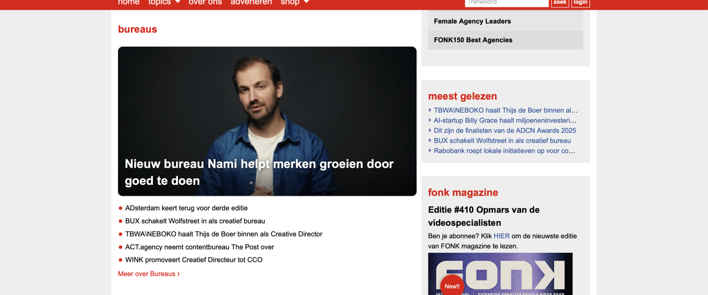 We zijn vereerd om te worden opgenomen in FONK Magazine, een toonaangevend magazine dat creatieve professionals in verschillende disciplines inspireert en verbindt, waar onze oprichter, Ilia ten Böhmer, Nami's unieke aanpak bespreekt om gedragsonderzoek te combineren met strategische storytelling. Deze methodologie is niet alleen gericht op het stimuleren van commerciële groei, maar ook op het positief bijdragen aan de samenleving. Zoals Ilia stelt: "Merken die goed doen, doen het goed."