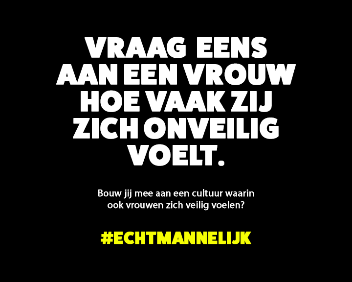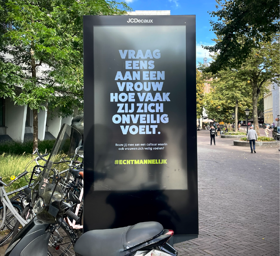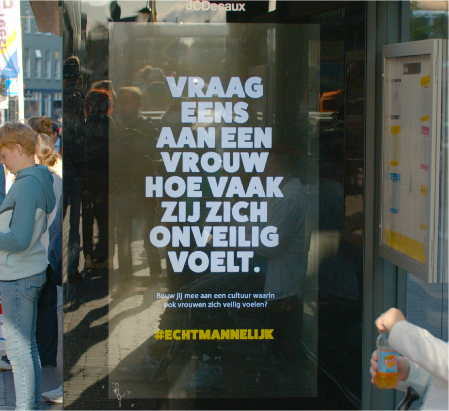 #EchtMannelijk sets a new standard: true masculinity is about respect and responsibility. With confronting messages in public spaces, the campaign sparked a national conversation about safety and masculinity.